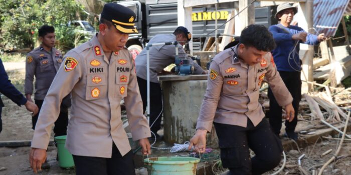 Merangin,informasikita.com — Pasca banjir bandang menerjang desa pulau bayur,beberapa waktu lalu , Jajaran Kepolisian Resor (Polres) Merangin bersama personel Brimob Polda Jambi, menggelar