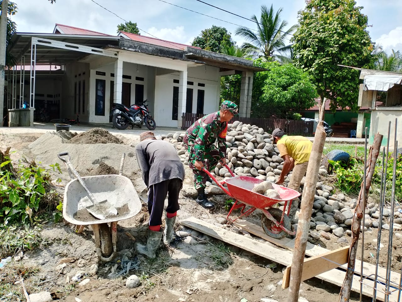 Bersama warganya, Babinsa Gotong Royong di desa binaan