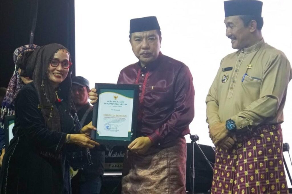BANGKO,INFORMASIKITA.COM-Kabupaten Merangin berhasil meraih Penghargaan Pergerakan Wisatawan dari Gubernur Jambi H Al Haris, pada acara pembukaan Festival Batanghari, di RTH Putri Pinang Masak Kota Jambi, Jumat malam (05/7).