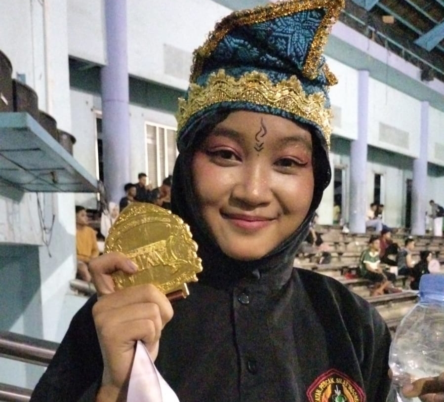 Civa Liana putri (15) pelajar kelas 10 di SMAN 12 Merangin, Akhirnya bisa menyelesaikan pada cabang lomba jurus tunggal, hasilnya sangat mengejutkan dirinya mendapatkan medali emas.