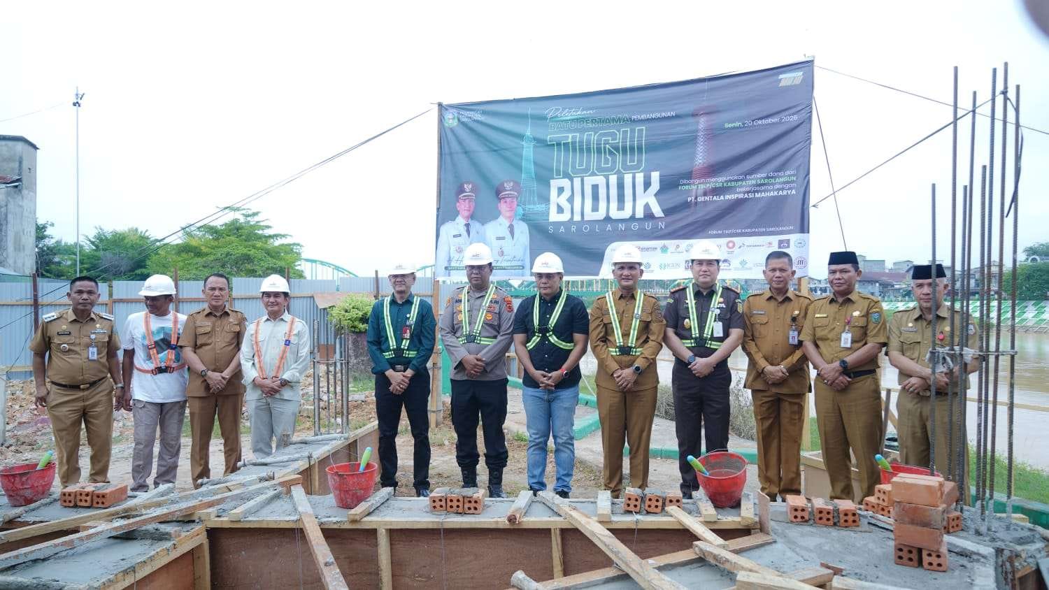 SAROLANGUN, informasikita.com -Bupati Sarolangun H Hurmin bersama Forkopimda Kabupaten Sarolangun melakukan peletakan batu pertama pembangunan tugu biduk Sarolangun, Senin (20/10/2025) di tepi sungai Batang Tembesi, Kawasan Taman CIK Minah Sarolangun, Kelurahan Sarkam, Kecamatan Sarolangun.