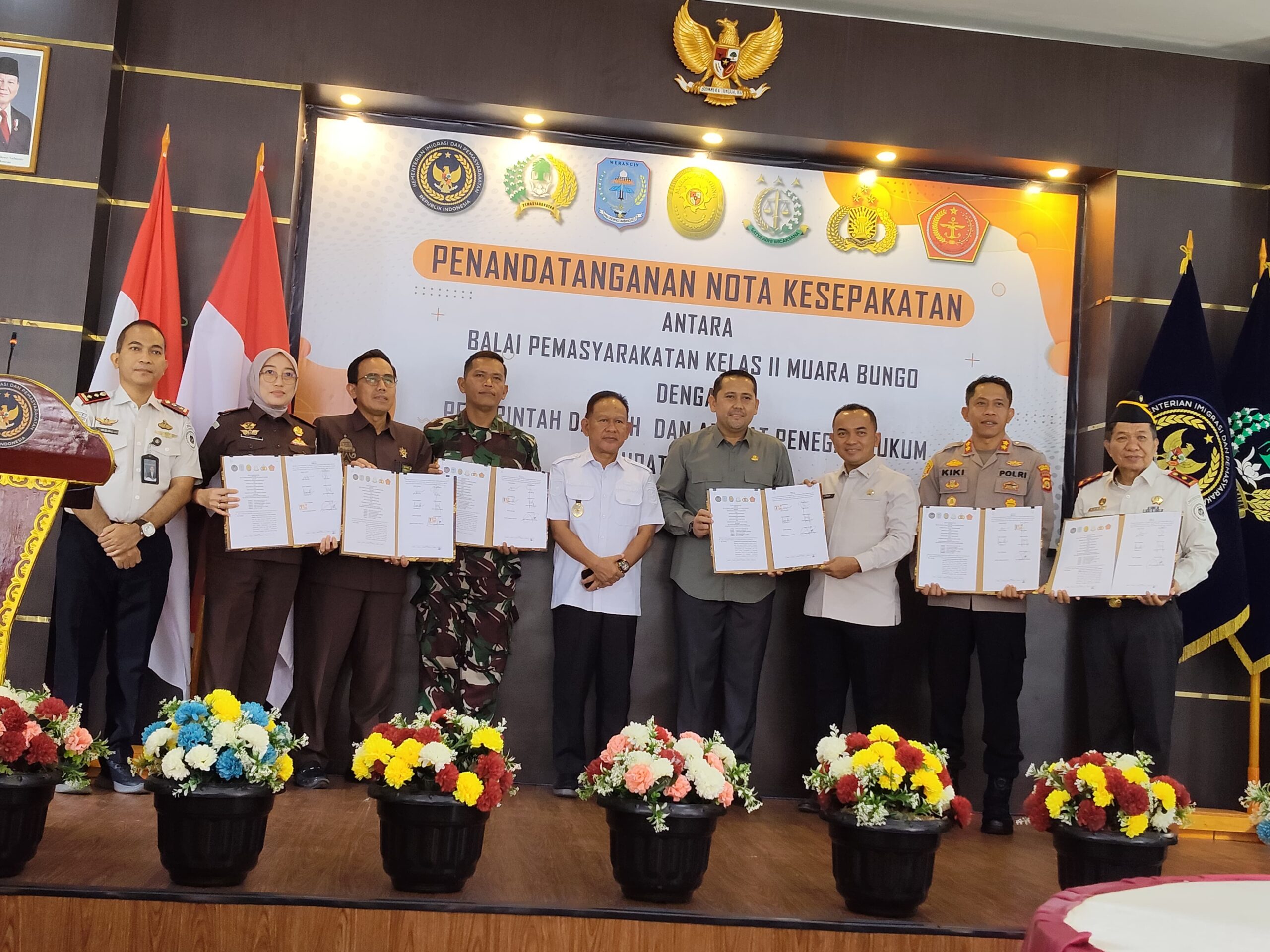 Merangin,informasikita.com – Upaya memperkuat sinergi dalam pembinaan serta pengawasan klien pemasyarakatan terus dilakukan oleh jajaran pemasyarakatan di Provinsi Jambi. Hal tersebut ditandai dengan penandatanganan nota kesepakatan, antara Balai Pemasyarakatan (Bapas) Kelas II Muara Bungo, dengan Pemerintah Kabupaten Merangin serta aparat penegak hukum di wilayah Kabupaten Merangin.