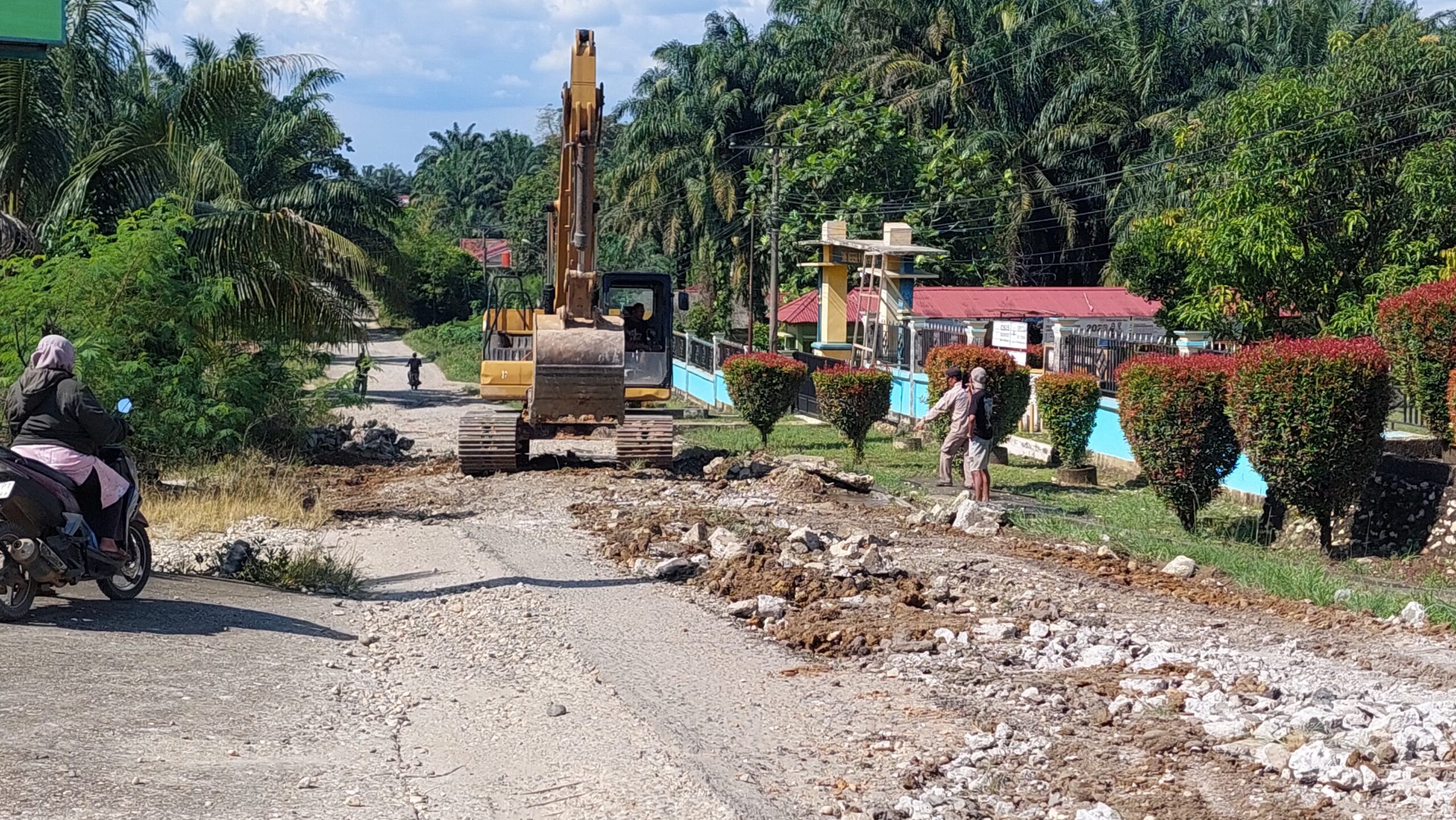 Pasca viral jalan di depan SMKN 9 Merangin, yang rusak dan menjadi perbincangan netizen, Bupati Merangin langsung turun kelapangan,bersama kadis PU -PR ,PLT camat pamenang selatan,kades tambang emas,dan hari ini dinas PU-PR Langung menurunkan satu alat berat,untuk meratakan jalan yang rusak.